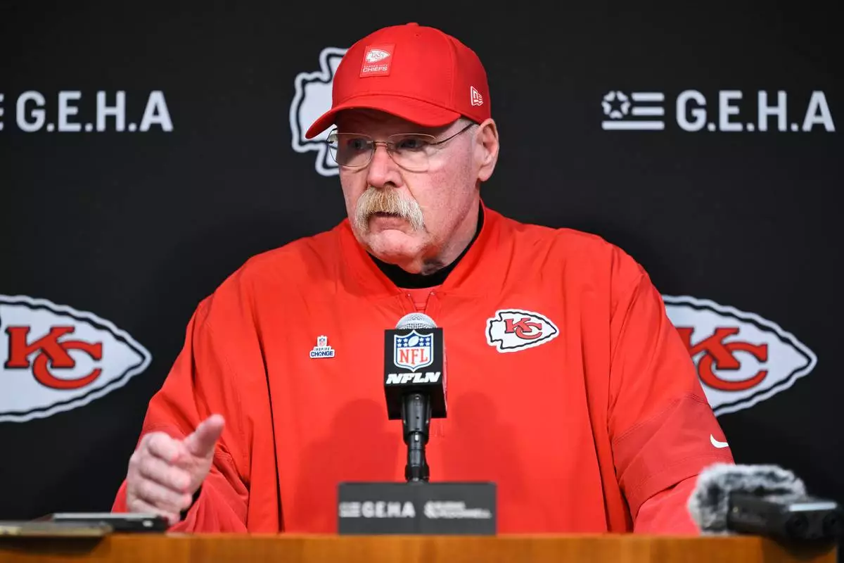 Kansas City Chiefs head coach Andy Reid speaks to the media after an NFL football game against the Tennessee Titans, Sunday, Dec. 21, 2025, in Nashville, Tenn. (AP Photo/John Amis)