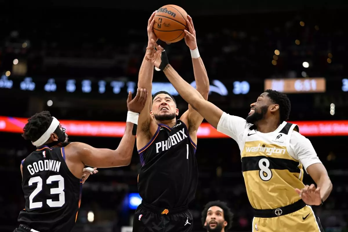 Phoenix sank 17 of 40 3-pointers (42.5%) and led Washington 20-9 in offensive rebounds while moving six games above .500 (19-13) for the first time this season.