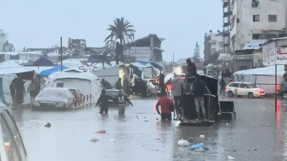 Over the weekend, winter rains lashed the Gaza Strip, flooding displacement camps with ankle-deep water. Gaza's Health Authority said at least 12 people, including a two-week-old infant, have died from hypothermia or weather-related collapses.