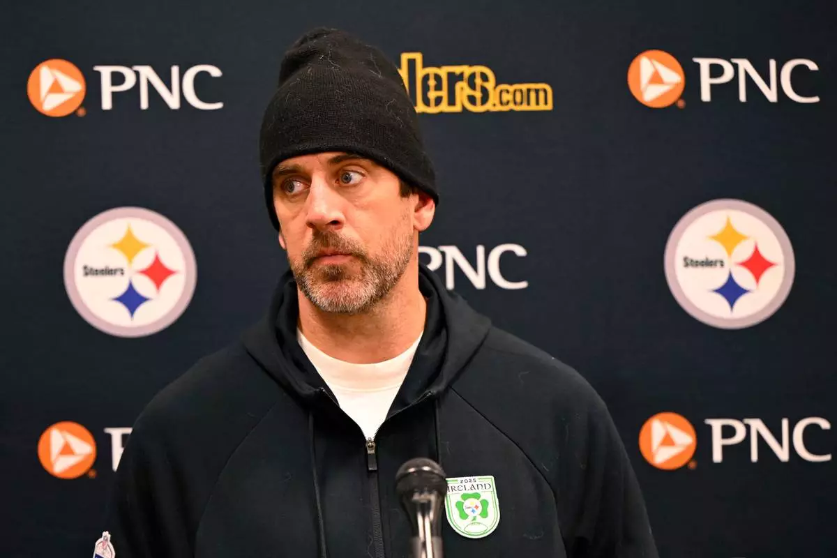 Pittsburgh Steelers quarterback Aaron Rodgers speaks during a news conference after an NFL football game against the Cleveland Browns, Sunday, Dec. 28, 2025, in Cleveland. (AP Photo/David Richard)