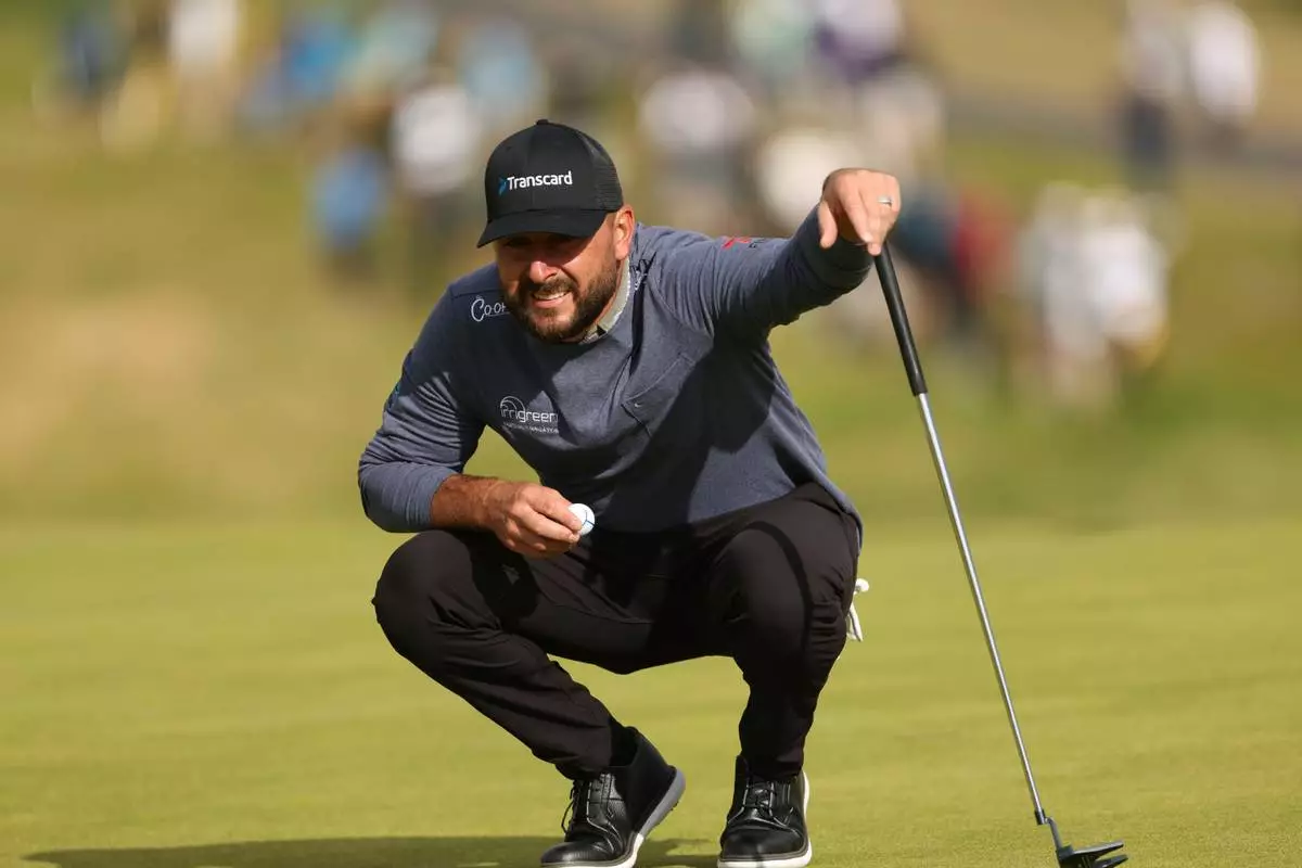 FILE - Stephan Jaeger, of Germany, looks at his putt on the first green during the first round of the British Open golf championship at the Royal Portrush Golf Club, Northern Ireland, July 17, 2025. (AP Photo/Peter Morrison, File)