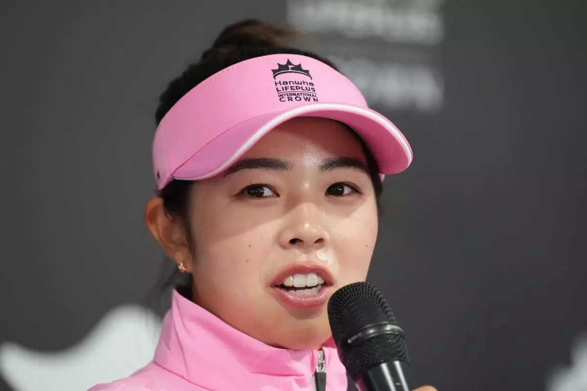 FILE - Miyu Yamashita, of Japan, speaks during a news conference ahead of the LPGA International Crown golf tournament at the New Korea Country Club in Goyang, South Korea, Oct. 22, 2025. (AP Photo/Lee Jin-man, File)