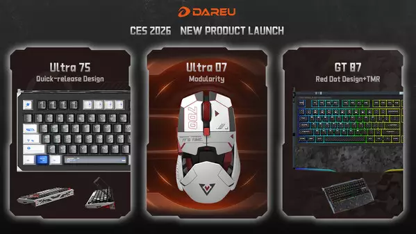 LAS VEGAS, Dec. 31, 2025 /PRNewswire/ -- DAREU, the gaming peripheral brand built on the ethos "DARE TO BE YOU," is set to present its latest lineup of gaming peripherals at CES 2026, unveiling three new products that reflect the brand's ongoing pursuit of performance, design innovation, and player-centric engineering. The showcase will take place from January 6 to 9, 2026, at the Las Vegas Convention Center, South Hall 1, Booth 31931, where visitors can experience the Ultra75 hall effect magnetic keyboard, the Ultra07 gaming mouse, and the Red Dot Design Award–winning GT87 keyboard.