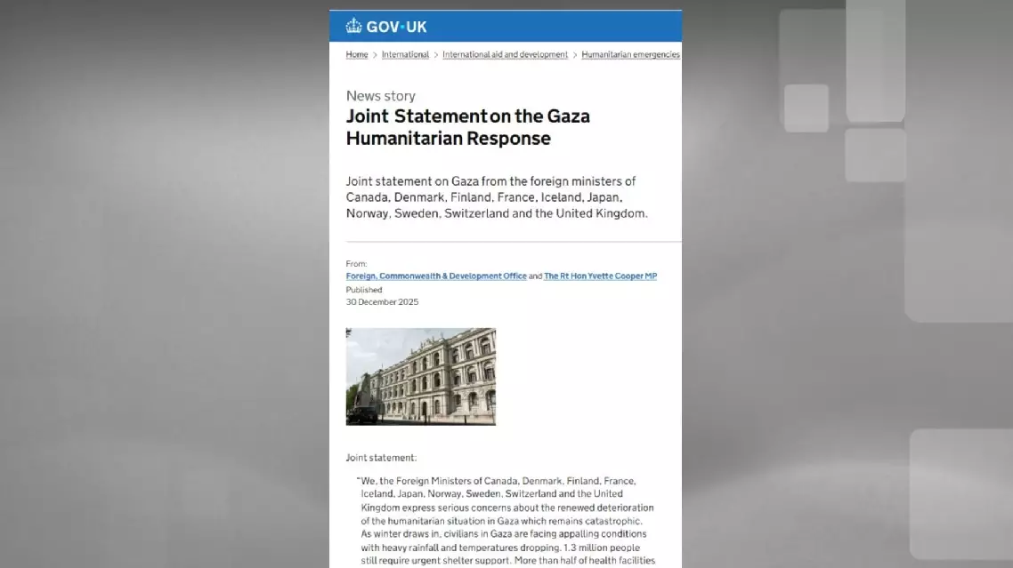 The ministers called on the Israeli government to ensure the "sustained and predictable" operation of international non-governmental organizations in Gaza to secure a humanitarian response, and to ensure that the United Nations and its partners can continue delivering aid in the region.