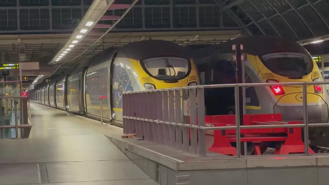 The video footage shot on Tuesday in London's St. Pancras International Train Station, a major transportation hub connecting the UK and continental Europe, showed halted Eurostar trains in an almost empty station hall.