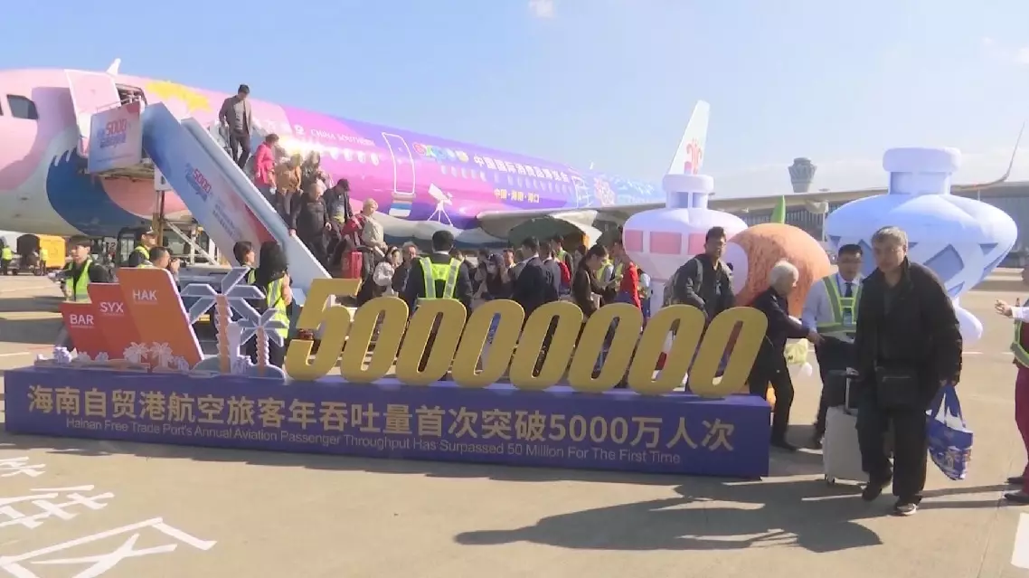 The annual total passenger throughput of the three major airports in south China's Hainan Free Trade Port (FTP) has exceeded 50 million people for the first time in 2025, as the tropical island advances its opening-up drive.