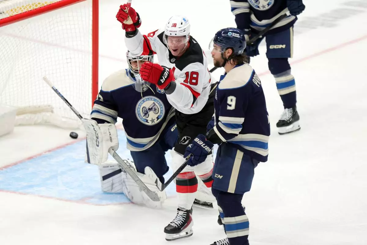 COLUMBUS, Ohio (AP) — Luke Hughes scored the go-ahead goal 4:45 into the third period and the New Jersey Devils scored three times in a 1:56 span in a 3-2 victory over the Columbus Blue Jackets on Wednesday night.