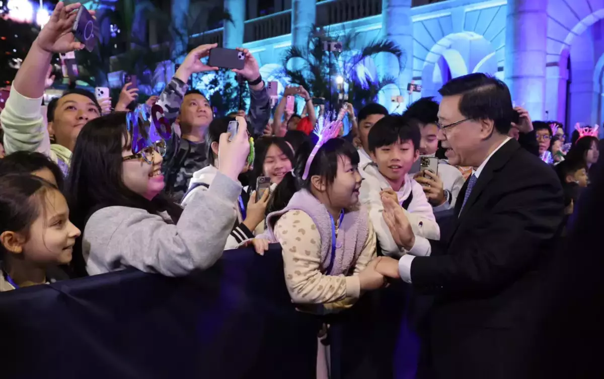 Mr John Lee, the Chief Executive, arrived in Central before midnight to attend the New Year Countdown and presided over the countdown ceremony. When Mr John Lee arrived at the spot, he chatted with citizens and tourists and waved to the on-site audience. Accompanying him were Miss Rosanna Law, the Secretary for Culture, Sports and Tourism, and Dr Peter Lam, the Chairman of the Hong Kong Tourism Board.