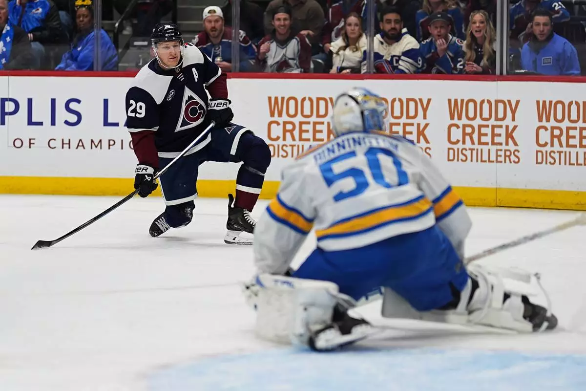 MacKinnon, who added two assists, leads the NHL with 34 goals. His 70 points were tied with Edmonton star Connor McDavid for most in the league.