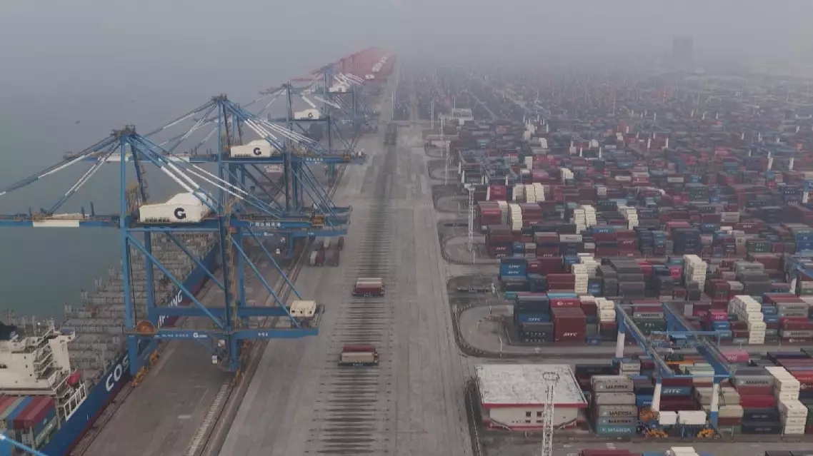 At the Qinzhou Automated Container Terminal, containers are transported by intelligently guided vehicles and efficiently loaded onto ships via automated cranes.