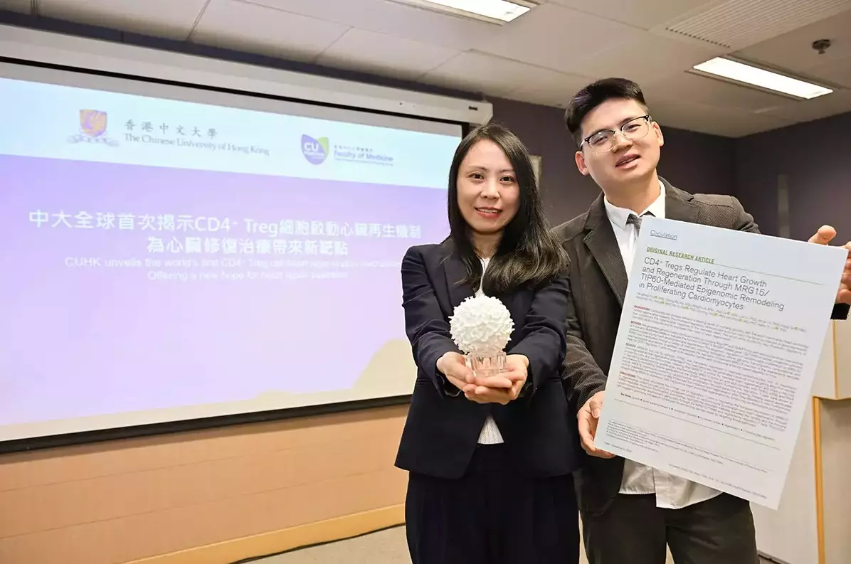 The Chinese University of Hong Kong (CUHK)’s Faculty of Medicine (CU Medicine) has announced the world’s first discovery that CD4+Treg cells (CD4+ FOXP3+ regulatory T cells) in the immune system can precisely regulate MRG15, a key to neonatal cardiac regeneration. The team also uncovered the mechanism through which these cells stimulate heart development and repair. This groundbreaking research offers a novel therapeutic target and strategy for cardiac regenerative medicine, potentially overcoming the challenge of the heart’s inability to self-repair after injury. The findings, which will benefit patients with myocardial infarction and heart failure in China and worldwide, have been published in Circulation, a leading international journal in cardiovascular medicine.