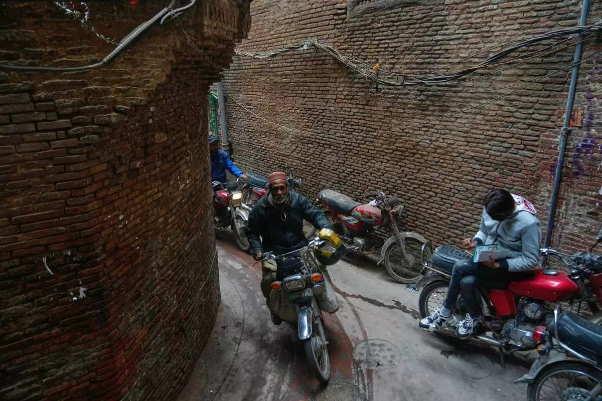 Motorcyclists drive through an alley in an old neighborhood in Lahore, Pakistan, Tuesday, Dec. 30, 2025. (AP Photo/K.M. Chaudary)