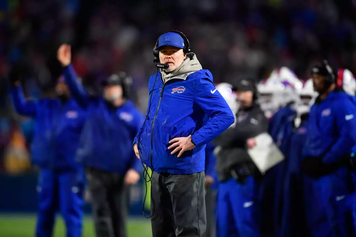 Buffalo Bills head coach Sean McDermott watches during the second half of an NFL football game against the Philadelphia Eagles, Sunday, Dec. 28, 2025, in Buffalo, N.Y. (AP Photo/Adrian Kraus)