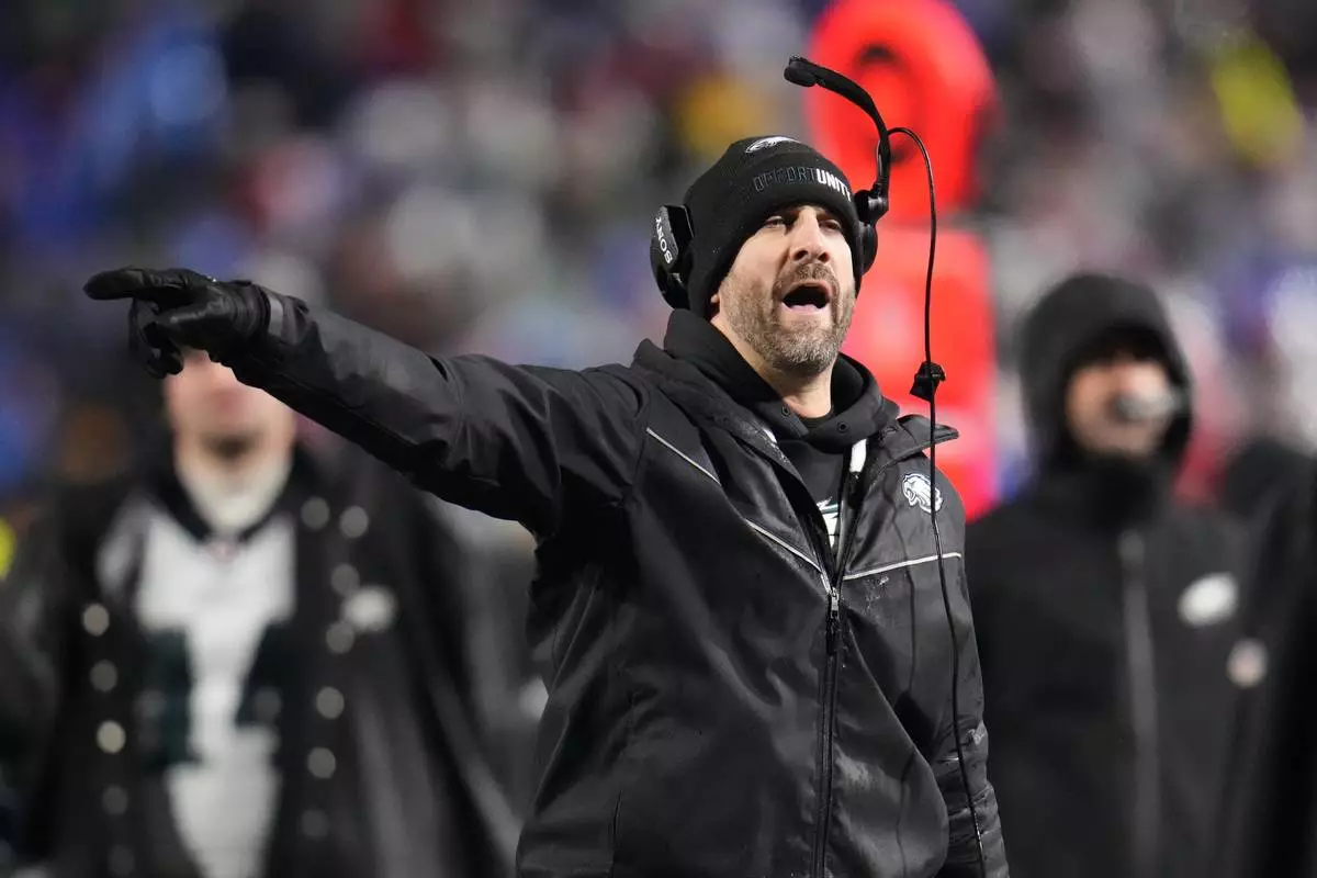 Philadelphia Eagles head coach Nick Sirianni reacts during the first half of an NFL football game against the Buffalo Bills, Sunday, Dec. 28, 2025, in Buffalo, N.Y. (AP Photo/Gene J. Puskar)