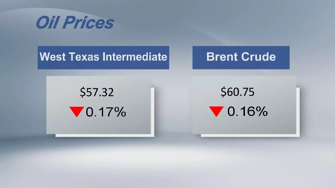 The West Texas Intermediate for February delivery lost 10 cents, or 0.17 percent, to settle at 57.32 U.S. dollars a barrel on the New York Mercantile Exchange. Brent crude for March delivery dropped 10 cents, or 0.16 percent, to settle at 60.75 dollars a barrel on the London ICE Futures Exchange.