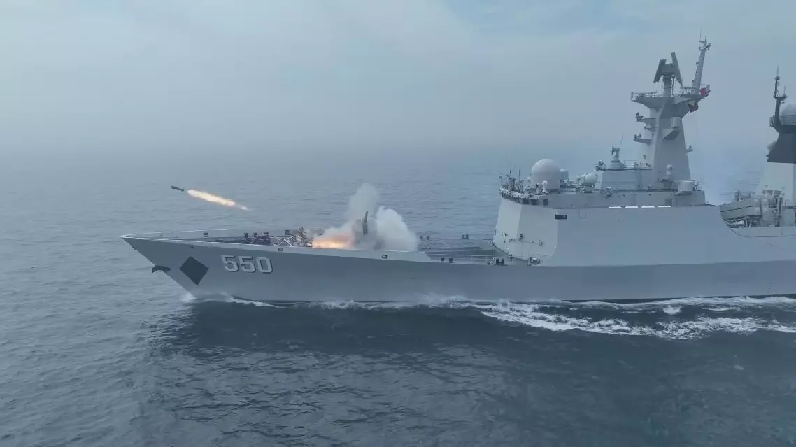 Naval forces were also active. Along the coast of the Yellow Sea, the Navy's Type 055 guided-missile destroyer Nanchang, in coordination with destroyer Xining, missile frigate Weifang, and other destroyers and frigates, carried out subjects such as naval gunnery landborne and seaborne target practices, and live firing of anti-frogman lethal rounds. They also conducted fleet air defense exercises in coordination with naval aviation, testing the troops' ability to transition from training to combat.