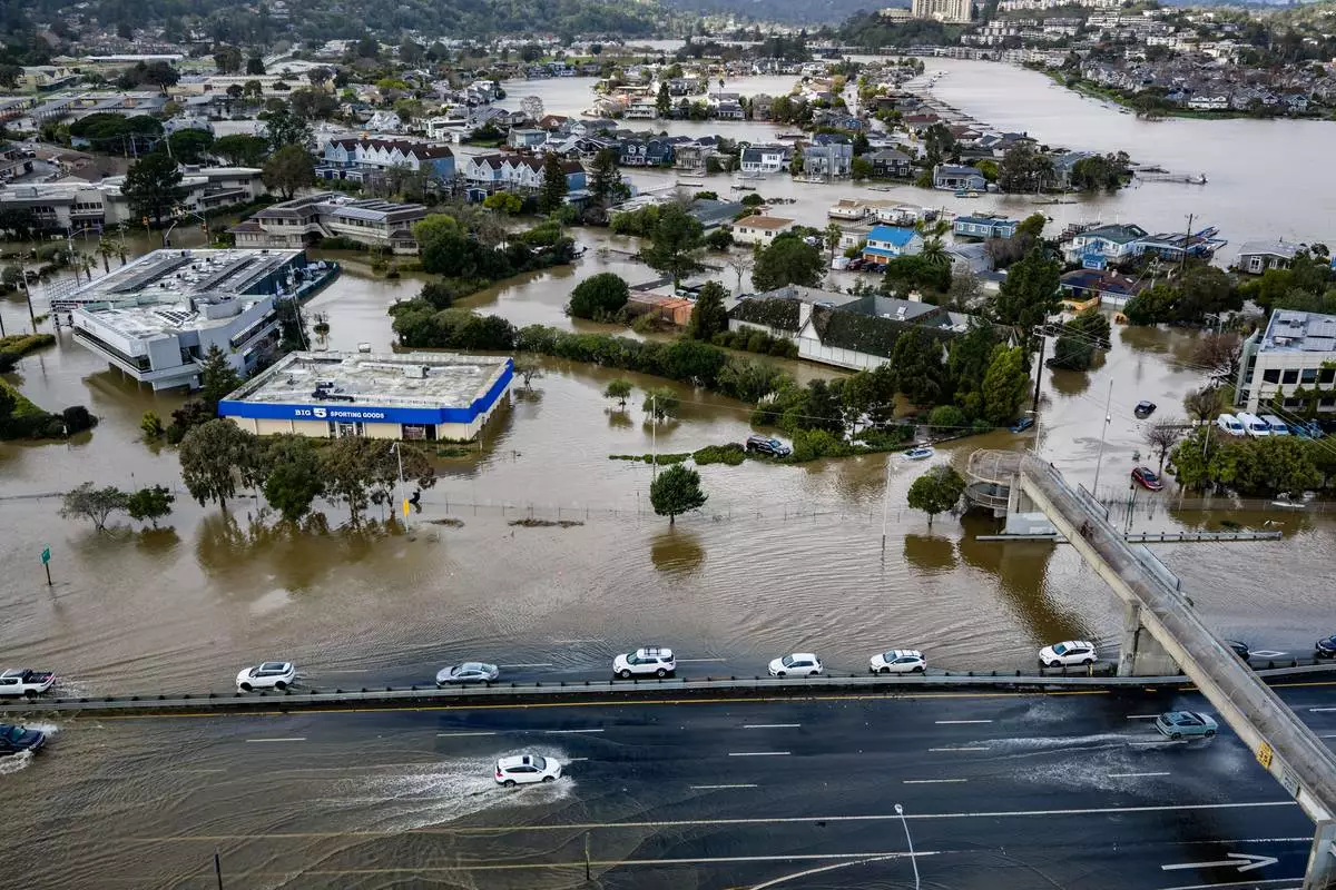 Authorities in the affected communities, which are north of San Francisco, asked people to stay home until waters recede. Some people kayaked along swamped streets, while others waded through water above their knees.