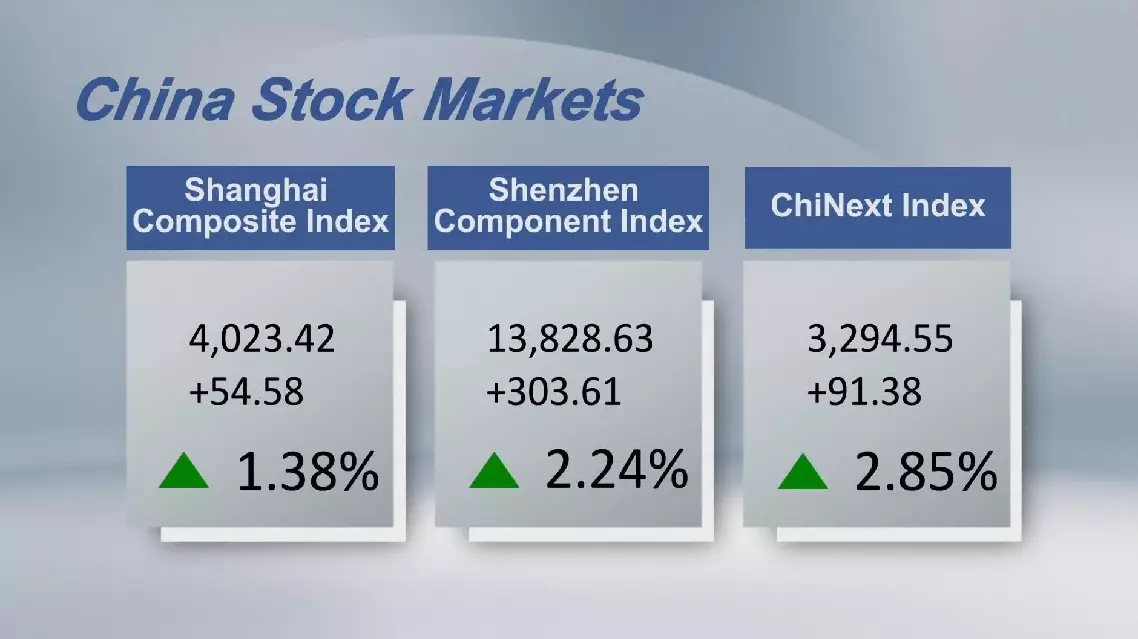 Chinese stocks closed higher on Monday, with the benchmark Shanghai Composite Index up 1.38 percent to 4,023.42 points.