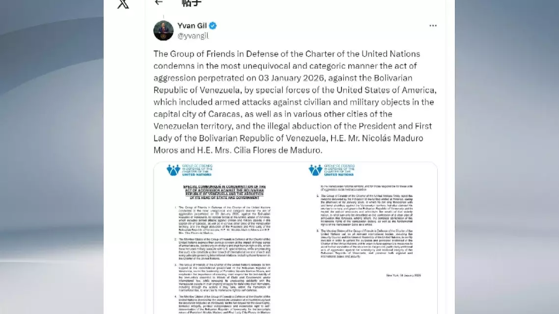 The Group of Friends in Defense of the Charter of the United Nations (U.N.) on Sunday condemned "in the most unequivocal and categoric manner" the United States' military aggression against Venezuela on Saturday.