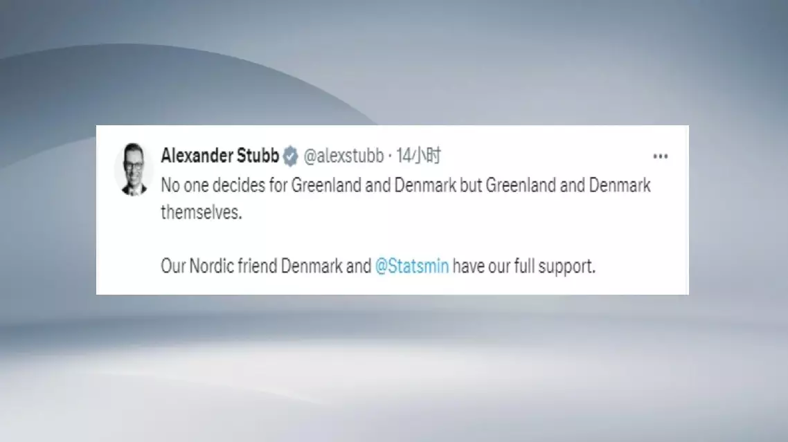On his social media platform on Monday, Finnish President Alexander Stubb expressed his country's full support for Greenland and Denmark, stating that "No one decides for Greenland and Denmark but Greenland and Denmark themselves. Our Nordic friend Denmark has our full support."