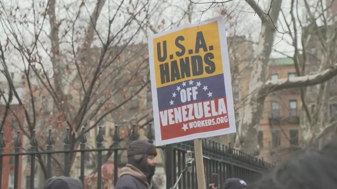 "I am here to demand the release of President Maduro and the ending of U.S. aggression on Venezuela. This is political theater. He is being attacked and he has been kidnapped because he represents a people who refused to bow to U.S. imperialism, who want to keep their sovereignty in the face of U.S. aggression," said Izzy McCabe, a protester.