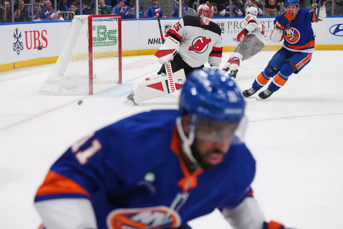 At the other end of the rink, Devils goaltender Jacob Markstrom allowed goals on the first two shots he faced — from Mat Barzal and Duclair — and three on five, finishing with nine on 24. His teammates had little bounce back after losing at home to Carolina on Sunday in a game in which young defenseman Luke Hughes twice put the puck into his own net.