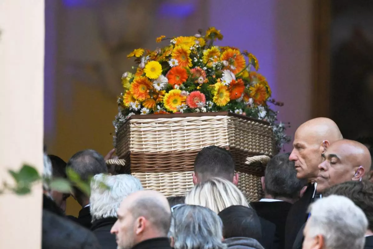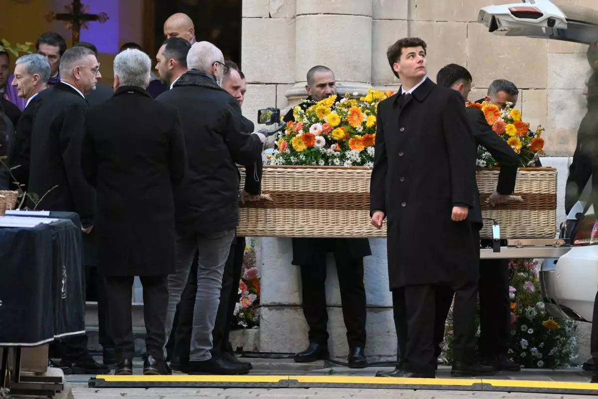 Actor Brigitte Bardot's coffin is carried outside Notre-Dame de l'Assomption church for her funeral ceremony, Wednesday, Jan. 7, 2026 in Saint-Tropez, southern France. (AP Photo/Philippe Magoni)