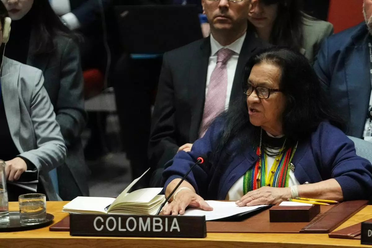 Colombia's ambassador to the U.N. Leonor Zalabata addresses the Security Council Monday, Jan. 5, 2026 at U.N. headquarters. (AP Photo/Frank Franklin II)