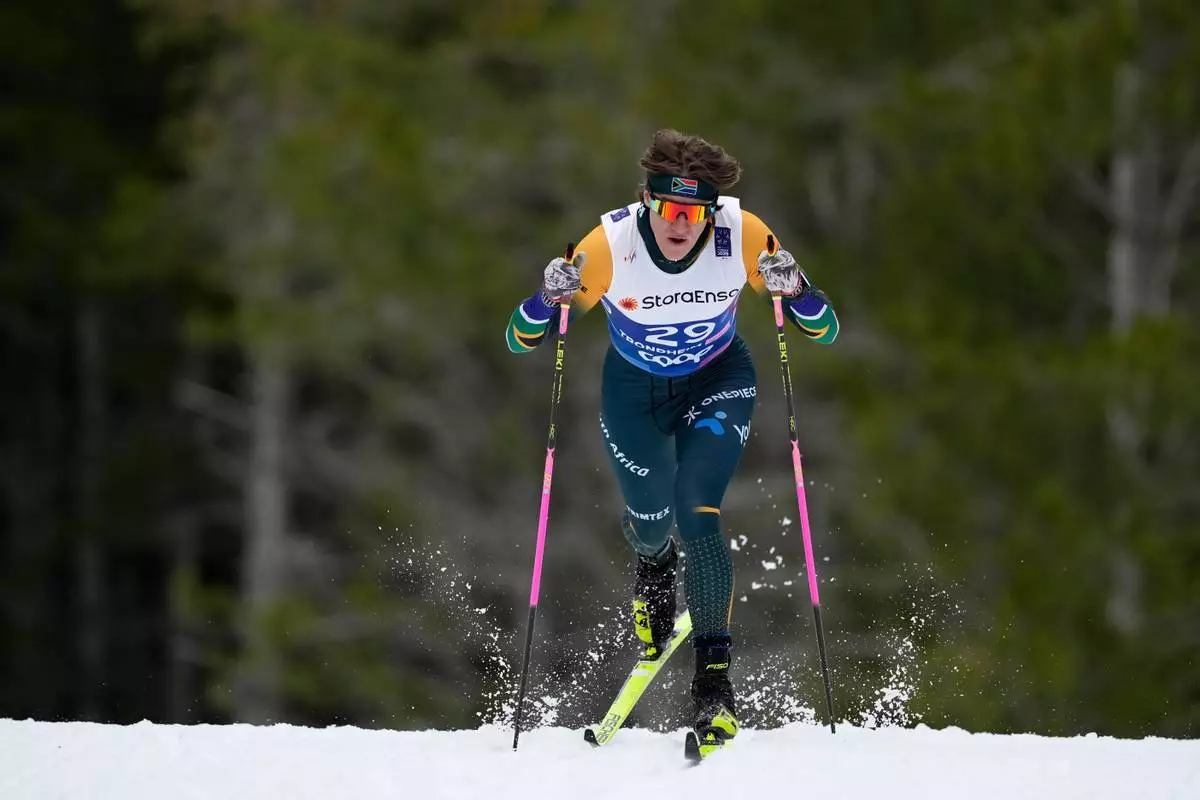 FILE - Matthew Smith, of South Africa, competes in the cross-country men's 7.5 km Interval Start Classic qualification race at the Nordic World Ski Championships in Trondheim, Norway, Wednesday, Feb. 26, 2025. (AP Photo/Matthias Schrader, File)