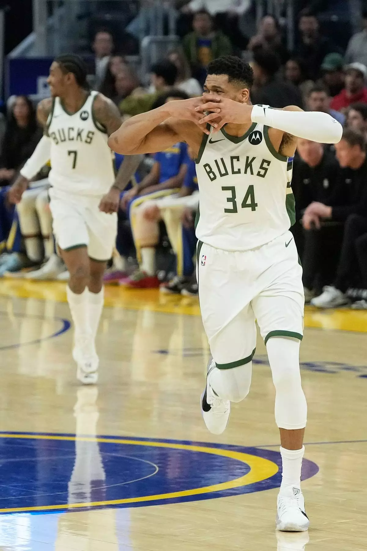 Anteokounmpo made 3 of his first 4 shots for seven quick points and wound up 15 for 22 from the floor — missing five of his seven free throws. The Bucks have lost six straight on the Warriors' home floor dating to a win on Jan. 8, 2020, in the first season at Chase Center.