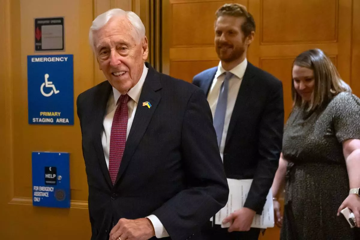 Rep. Steny Hoyer, D-Md., leaves after speaking on the House floor at the Capitol, Thursday, Jan. 8, 2026, in Washington. (AP Photo/Mark Schiefelbein)