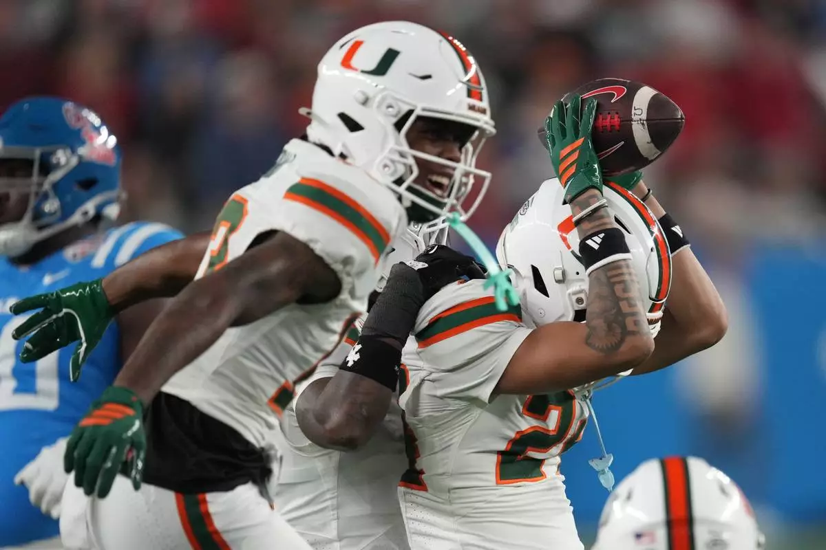 Sure enough, a few minutes later quarterback Carson Beck ran untouched into the end zone for a 3-yard touchdown to cap a bruising 15-play, 75-yard drive, and the No. 10 seed Hurricanes had earned a 31-27 victory over No. 6 Mississippi along with a chance to play for their first national title since 2001.