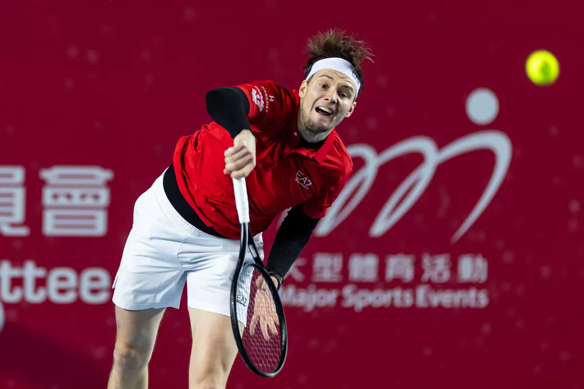 The tennis athlete Alexander Bublik serves his way to victory against Dutchman Botic van de Zandschulp in his Bank of China Hong Kong Tennis Open debut, Photo source: BOCHKTO