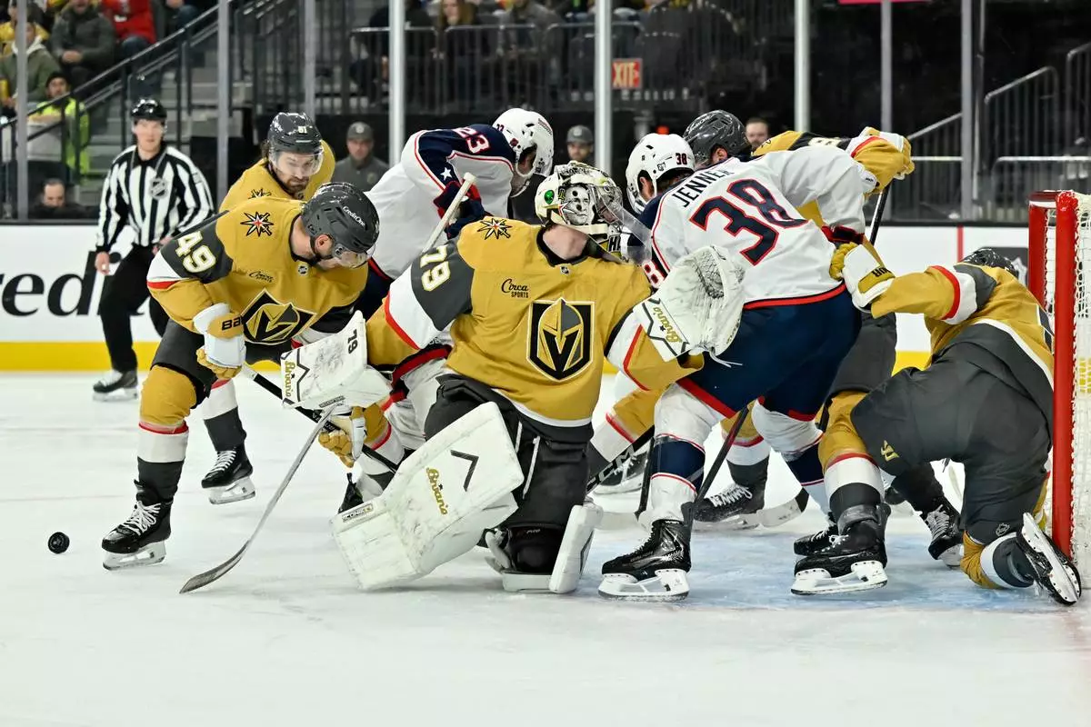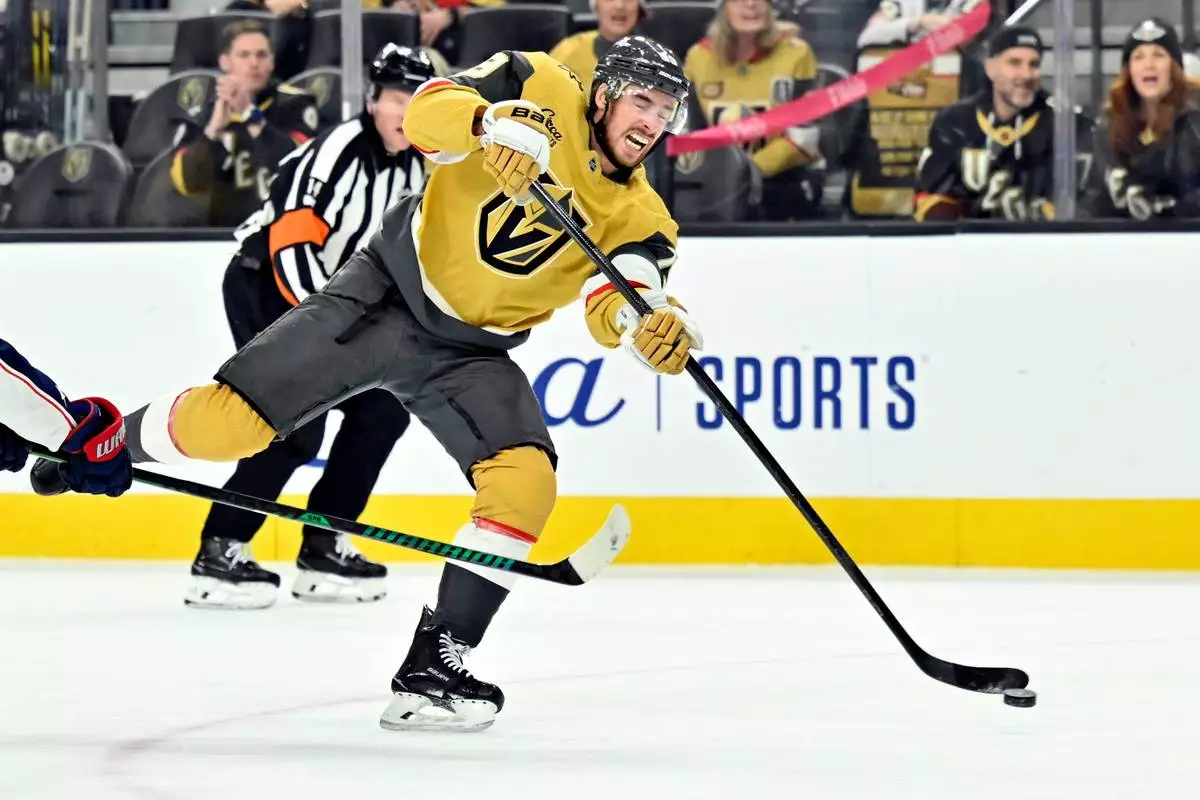 LAS VEGAS (AP) — Reilly Smith scored twice, Mark Stone extended his goal streak to six games and the Vegas Golden Knights overcame an early injury to goalie Carter Hart, rallying past the Columbus Blue Jackets 5-3 on Thursday night.