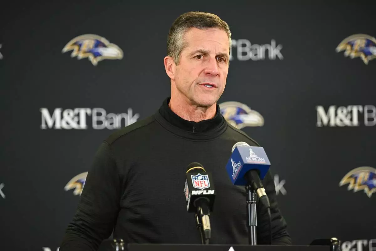 Baltimore Ravens head coach John Harbaugh speaks during a news conference after an NFL football game against the Pittsburgh Steelers, Sunday, Jan. 4, 2026, in Pittsburgh. (AP Photo/Justin Berl)