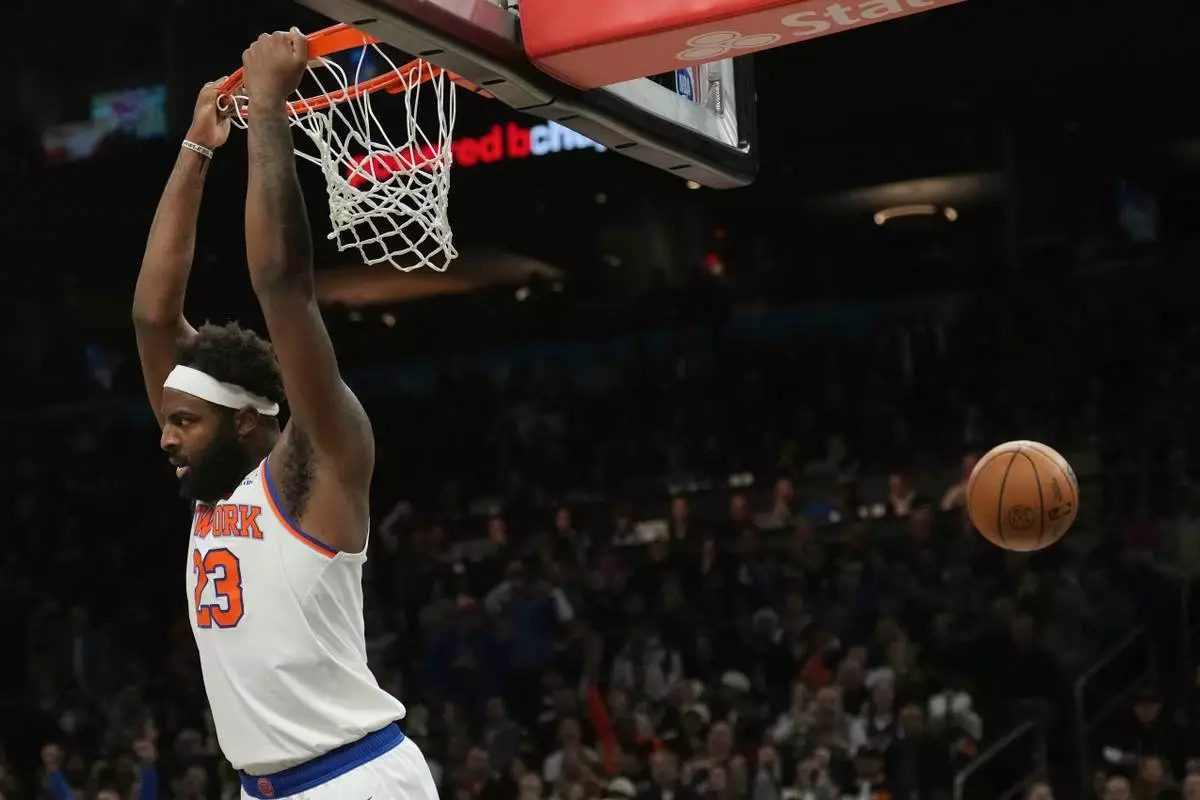 The Knicks trailed by 12 points late in the third quarter before Onunoby's 3 with 7:47 to go in the fourth pulled them to 96-92. Mitchell Robinson had a layup and then an alley-oop dunk to cut the Knicks' deficit to 101-99 with 4:10 left, and Anunoby made two free throws to tie the score a little more than a minute later.