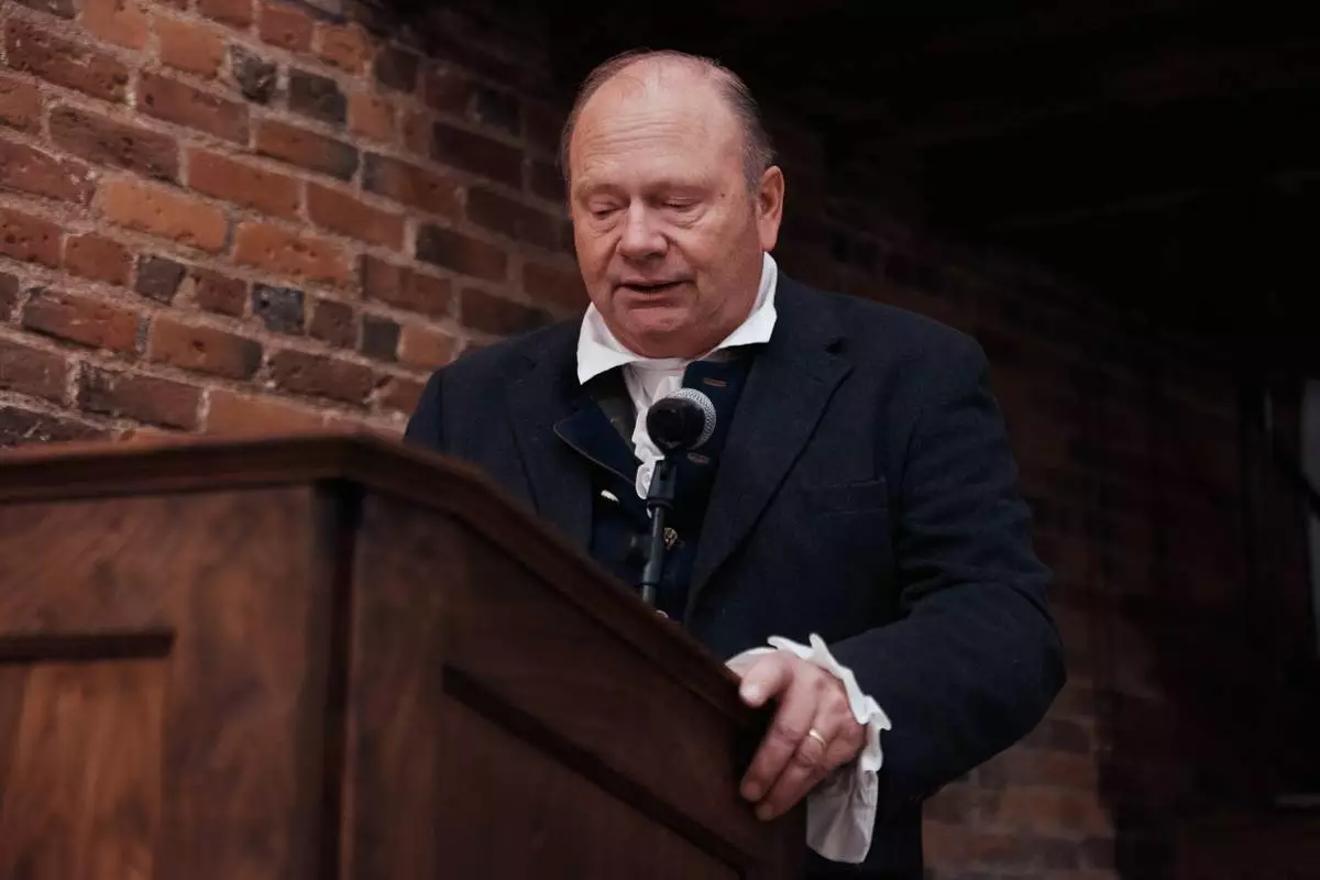 A man prepares to orates selected readings from Thomas Paine's Common Sense during an event commemorating the 250th anniversary of the pamphlet's publication at the Fraunces Tavern Museum on Saturday, Jan. 10, 2026, in New York. (AP Photo/Andres Kudacki)