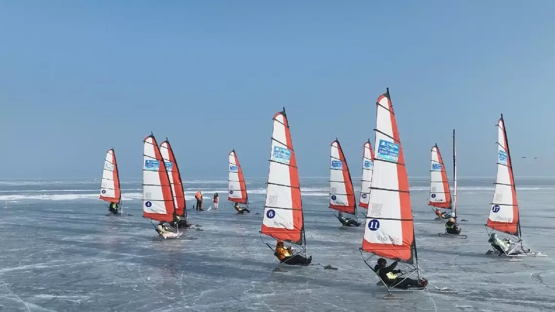 The event has drawn more than 20 elite athletes from eight provinces and cities across China, who are competing in a contest of speed and skill. With sails catching strong winds, the iceboats shot from the starting line like arrows, carving bright tracks across the mirror-like ice surface. The competitors skillfully maneuvered their vessels, chasing each other in a thrilling display of wind-powered racing.