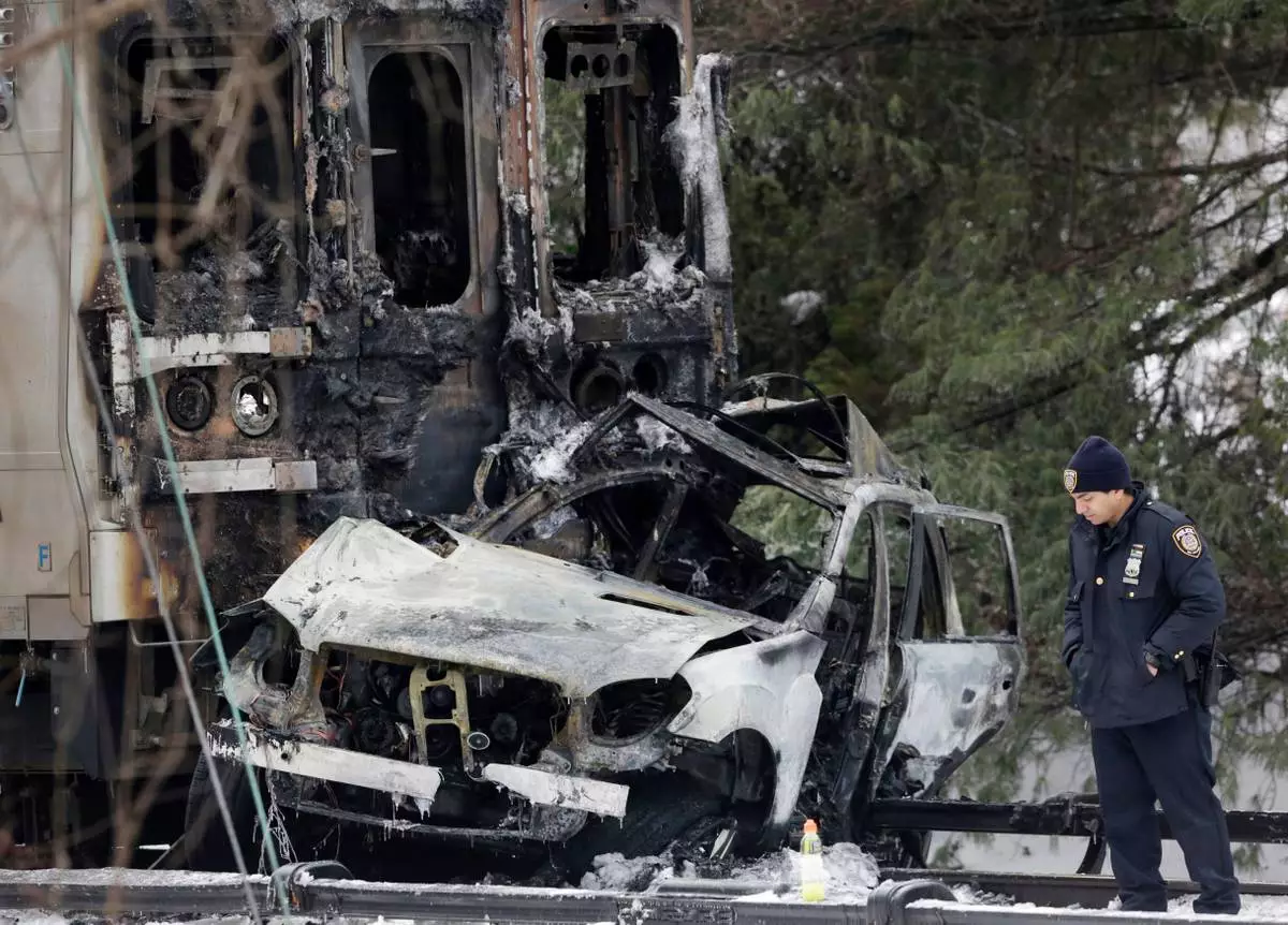The train smashed into the SUV at about 50 mph (80 kph) after the engineer hit the emergency brake only three seconds before the fiery collision. Parts of the railroad’s electrified third rail ripped off the ground, piercing the SUV’s gas tank and slicing into the train’s first passenger car.