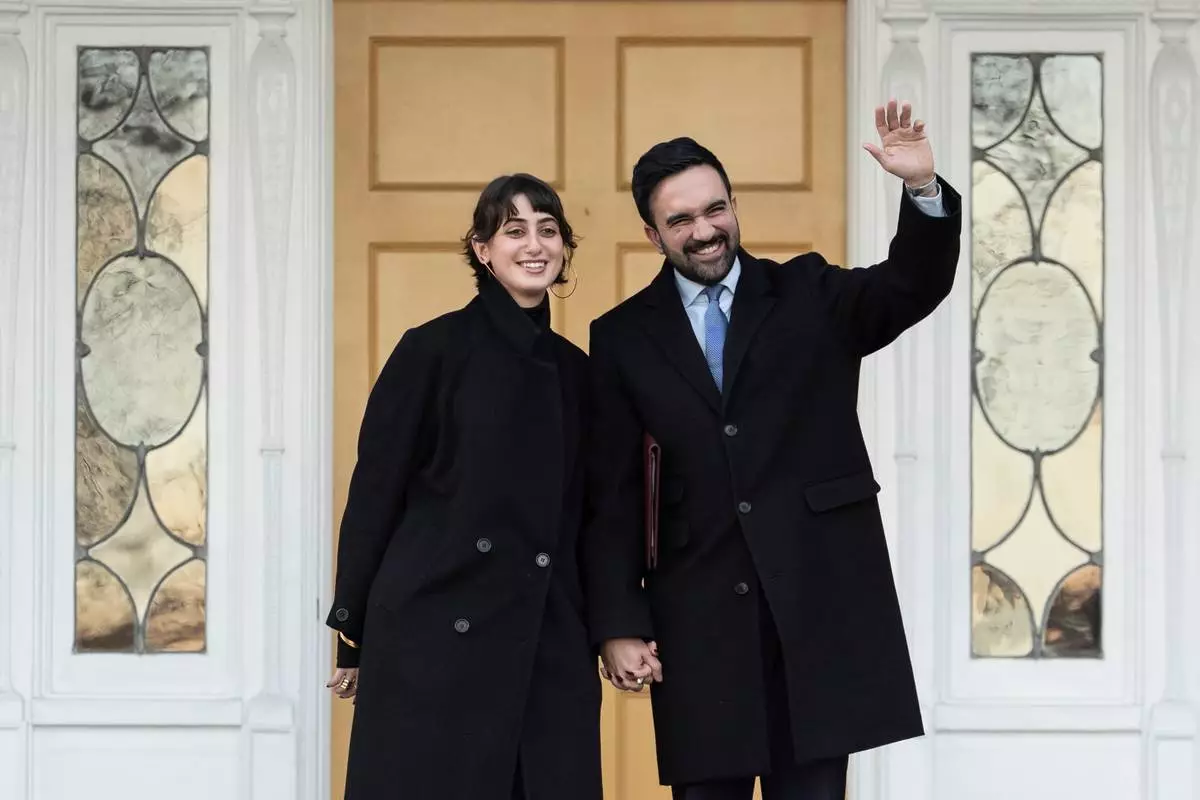 New York Mayor Zohran Mamdani, right, and his wife Rama Duwaji leave a news conference at Gracie Mansion, Monday, Jan. 12, 2026, in New York. (AP Photo/Yuki Iwamura)