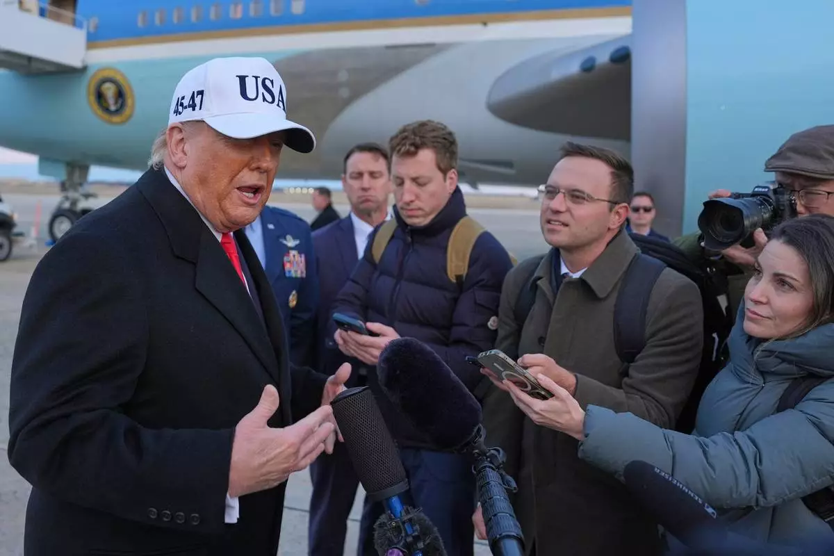 President Donald Trump speaks with reporters at Joint Base Andrews, Tuesday, Jan. 13, 2026, in Joint Base Andrews, Md. (AP Photo/Evan Vucci)