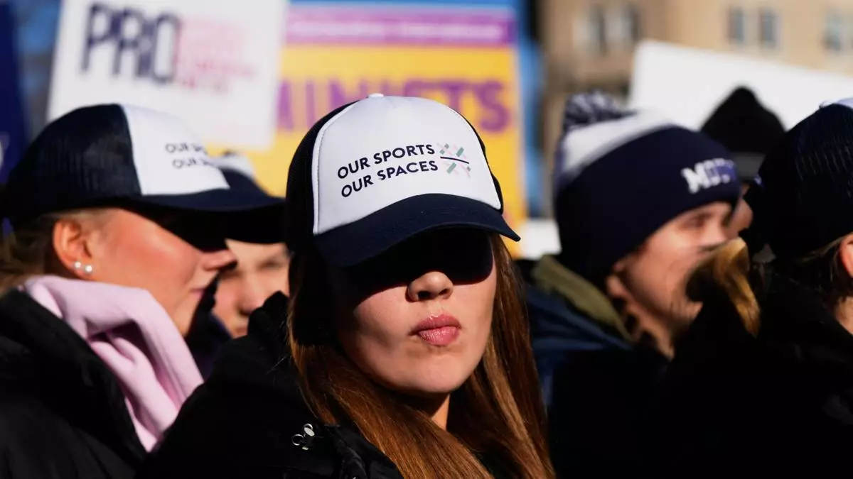 WASHINGTON (AP) — People for and against letting transgender girls and women play on female school sports teams gathered at The Supreme Court on Tuesday.