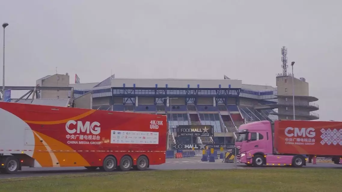 The "China Red" fleet of 4K/8K ultra-high-definition broadcast vehicles dispatched by China Media Group (CMG) arrived at the renowned San Siro Stadium in Italy's Milan on Tuesday.