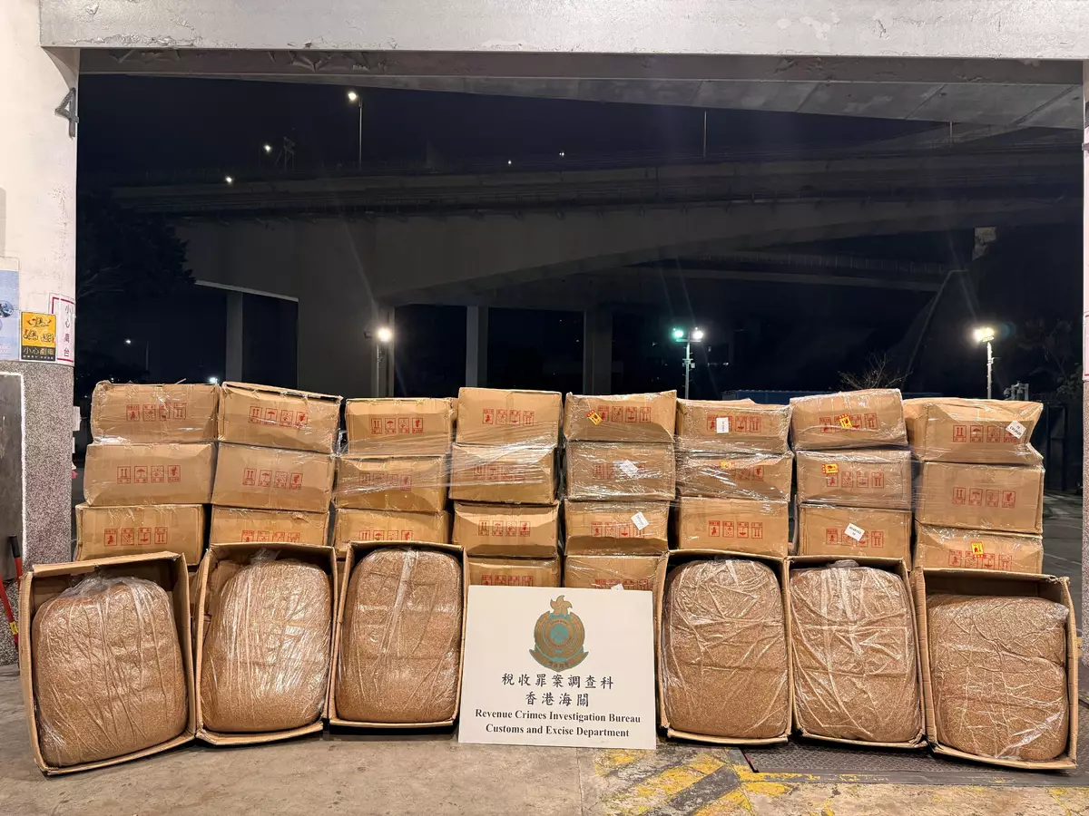 Hong Kong Customs yesterday (January 13) raided two suspected illicit tobacco product centres in Lau Fau Shan and seized about 4 800 kilograms of suspected duty-not-paid manufactured tobacco with an estimated market value of about $32.3 million and a duty potential of about $20 million. One person was arrested.