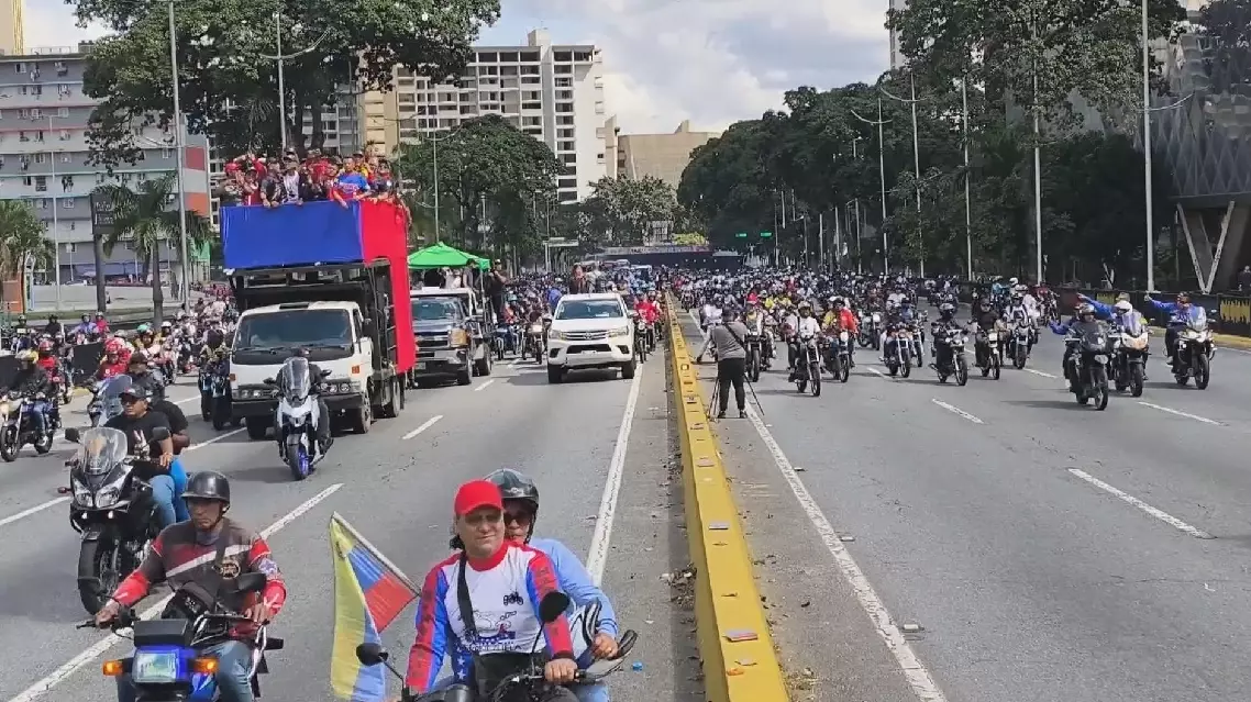 Bus, taxi, motorcycle drivers rally with vehicles in Caracas to demand Maduro release
