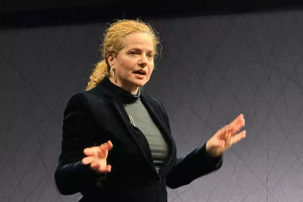 Speranza Scappucci conducts a masterclass at The Juilliard School in New York on Tuesday, Dec. 2, 2025. (AP Photo/Ron Blum)
