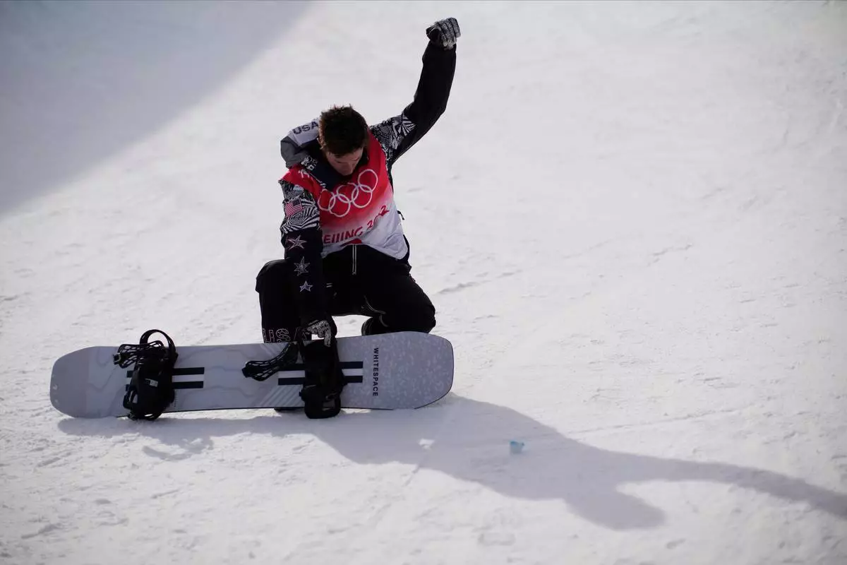 FILE - United States' Shaun White poses in the halfpipe course after the men's halfpipe finals at the 2022 Winter Olympics, Friday, Feb. 11, 2022, in Zhangjiakou, China. (AP Photo/Francisco Seco, File)