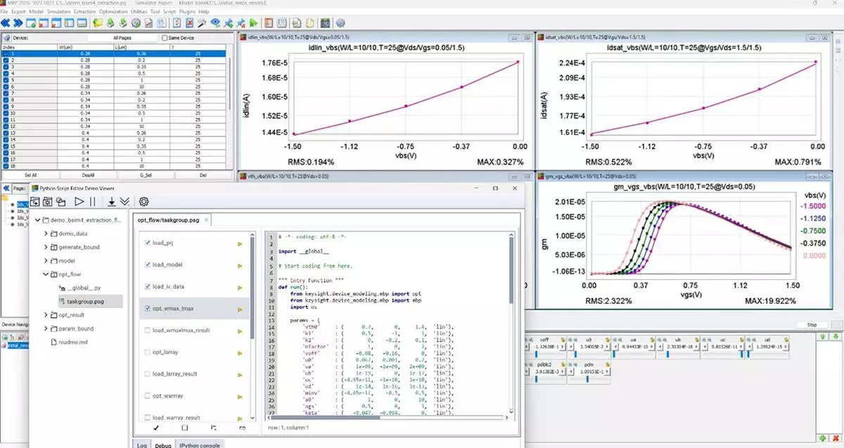 Keysight’s new Machine Learning Toolkit, featuring an ML optimizer, auto-extraction flows, and utilities within Device Modeling MBP 2026, tackles these challenges by introducing a framework that combines advanced neural network architectures with ML-based optimization. Using this toolkit, auto-extraction can reduce the parameter extraction steps from over 200 to fewer than 10, accelerating PDK delivery, automating DTCO, and speeding up time-to-market.