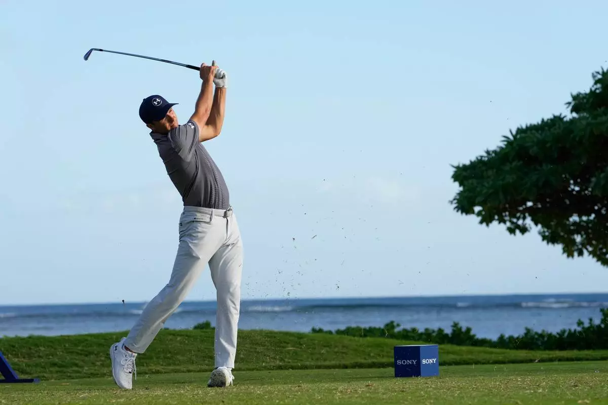 Brice Garnett hits on the 16th hole during the first round of the Sony Open golf event at the Waialae Country Club in Honolulu, Thursday, Jan. 15, 2026. (AP Photo/Matt York)