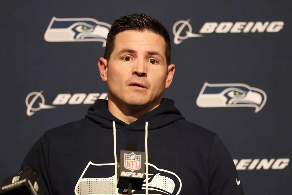 Seattle Seahawks head coach Mike Macdonald speaks at a news conference after an NFL football game against the San Francisco 49ers in Santa Clara, Calif., Saturday, Jan. 3, 2026. (AP Photo/Jed Jacobsohn)
